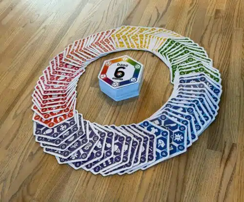 The Base6 Card Game Launch Pack is your gateway to endless fun and creativity! With its unique hexagonal cards, engaging visuals, and multiple modes of play, Base6 is designed for players of all ages for pure fun or to explore strategic play, storytelling, and idea generation. It’s versatile, easy to learn, and captivating for everyone from families to game design enthusiasts